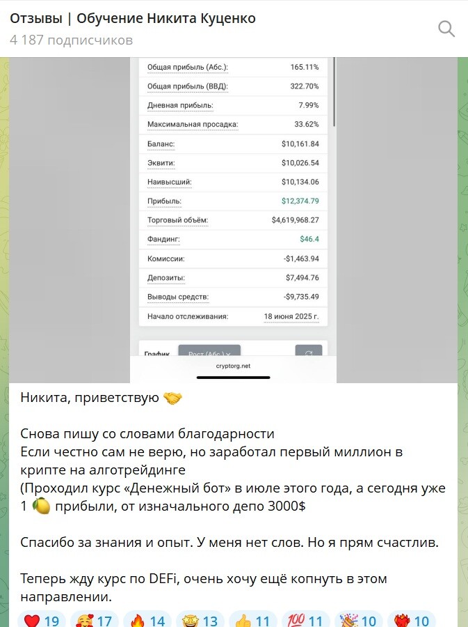 Участие в практических живых эфирах с автором курса Никитой Куценко в течение учебного потока